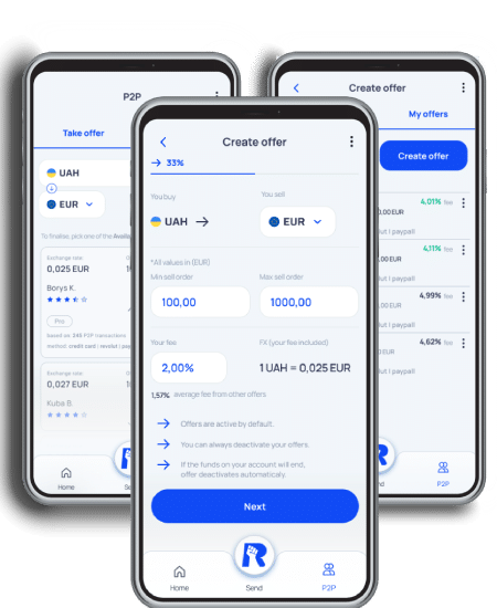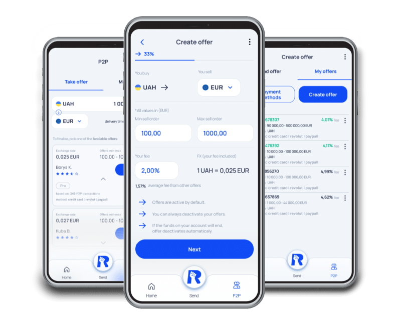 Введіть суму + валюту, яку ви хочете відправити, і валюту, яку ви хочете отримати, і дізнайтеся, чому Rebell P2P є найкращою пропозицією на ринку.